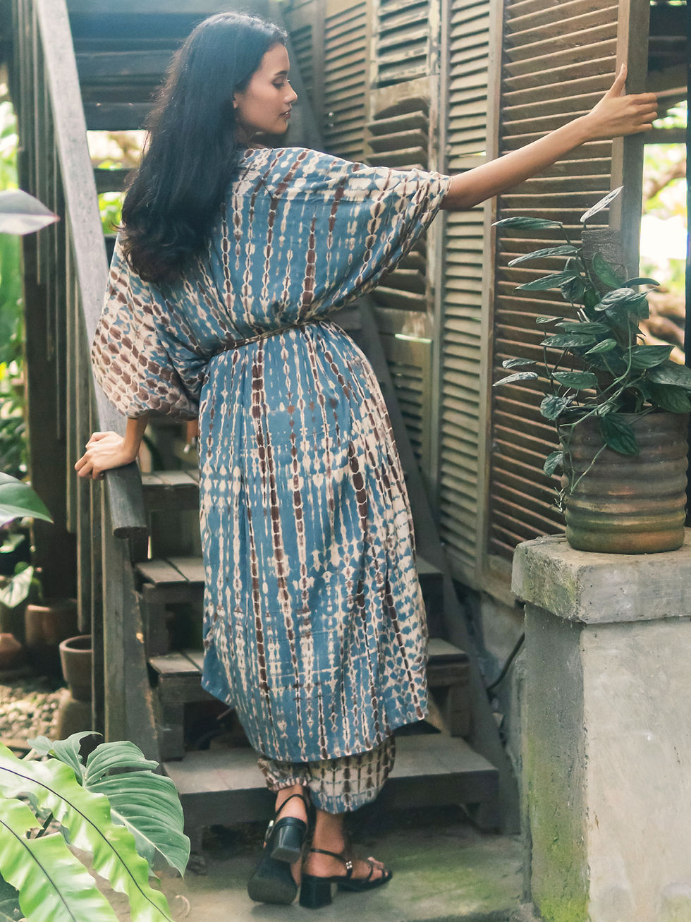 Suzie Blue Long Kimono - Classic Tie-Dye - Grey