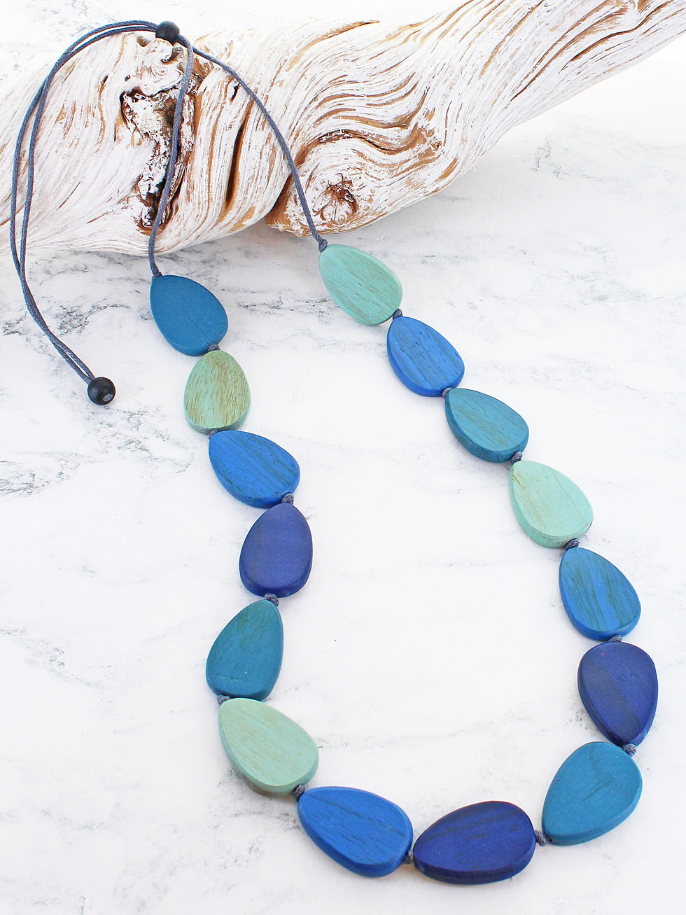 Suzie Blue Painted Wood Heart Necklace - Teal