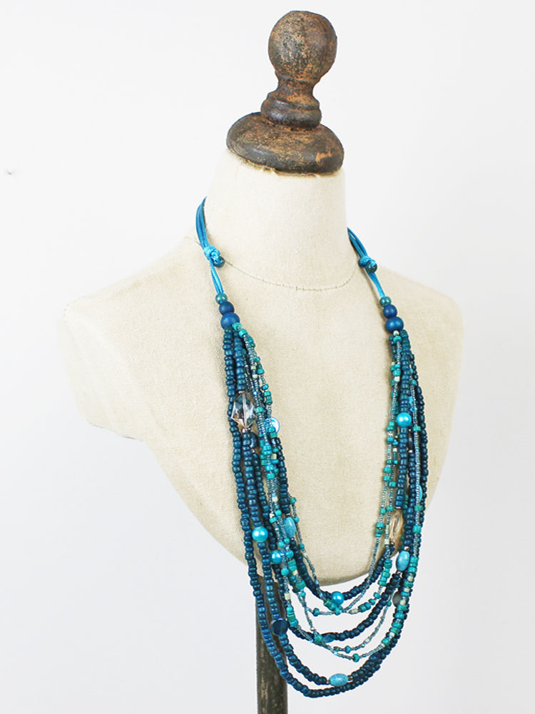 Suzie Blue Long Multi-Strand Pretty Bead Necklace